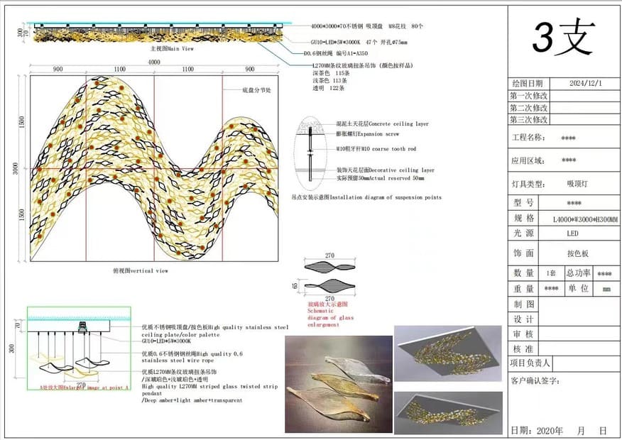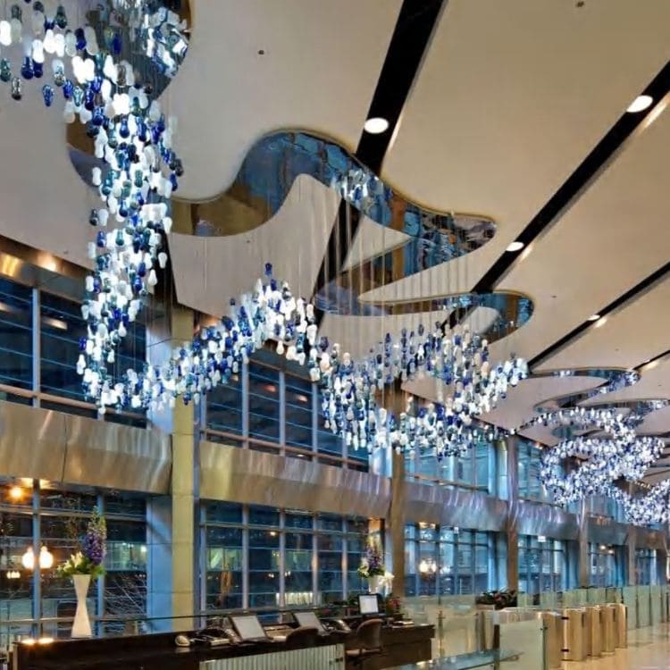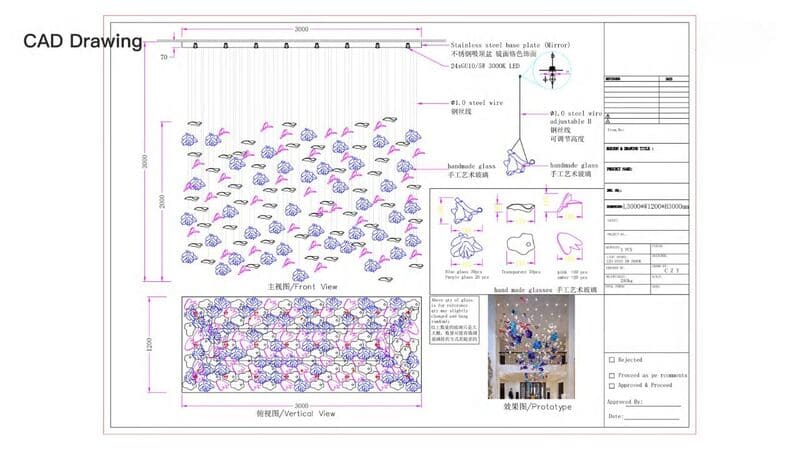 Design with freedom—select handcrafted glass crystals, 304 stainless steel, or brass at up to 75% less than Murano glass. Our renderings and unlimited revisions ensure your vision becomes a stunning reality.